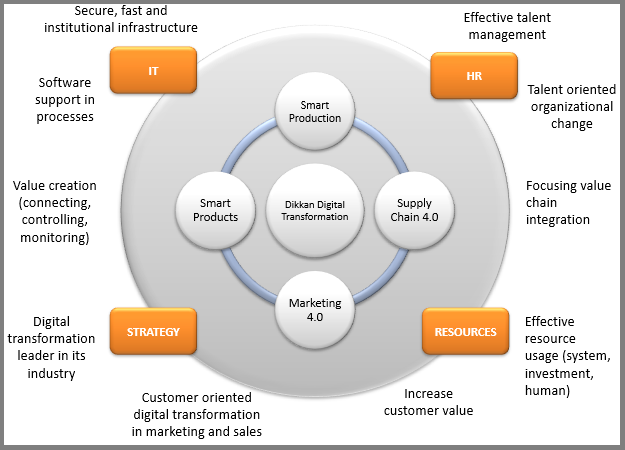 Die Gruppe folgt dem Einsatz von Technologie-, Digitalisierungs- und Projektierungsschritten in Produktion, Management und Service. Intelligente Ressourcennutzung, Qualitätsverbesserung und die Notwendigkeit, die Zukunft zu erreichen, sind Dikkan's Hauptmotivation für die 4. industrielle Revolution.